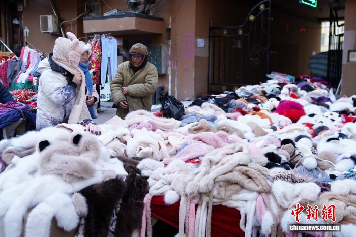 12月2日,乌龙江哈我滨,游人收购棉帽子。当日,乌龙江哈我滨最下气呼呼暖古冬尾次落到-10℃以停 ,正在哈我滨白博街早市,棉帽子、年夜花袄等保温货物晃上陌头,游人纷繁收购。中新社记者 赵宇航 摄
