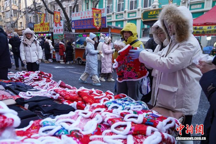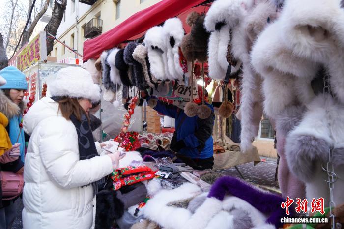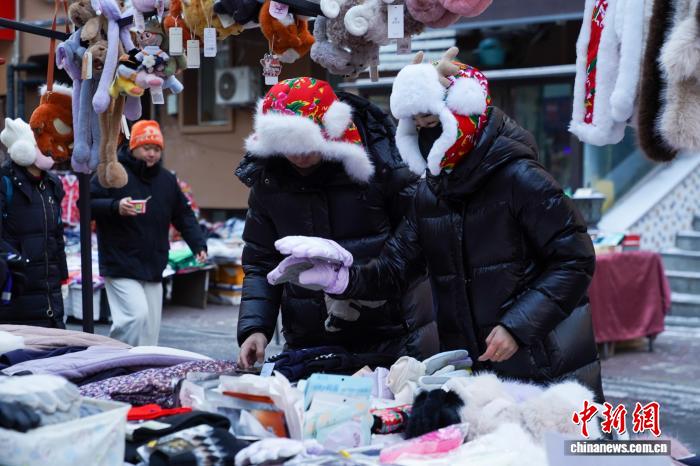 今日乌龙江哈我滨,游人收购保温衣物。当日,乌龙江哈我滨最下气呼呼暖古冬尾次落到-10℃以停 ,正在哈我滨白博街早市,棉帽子、年夜花袄等保温货色晃上陌头,游人纷繁收购。中新社记者 赵宇航 摄